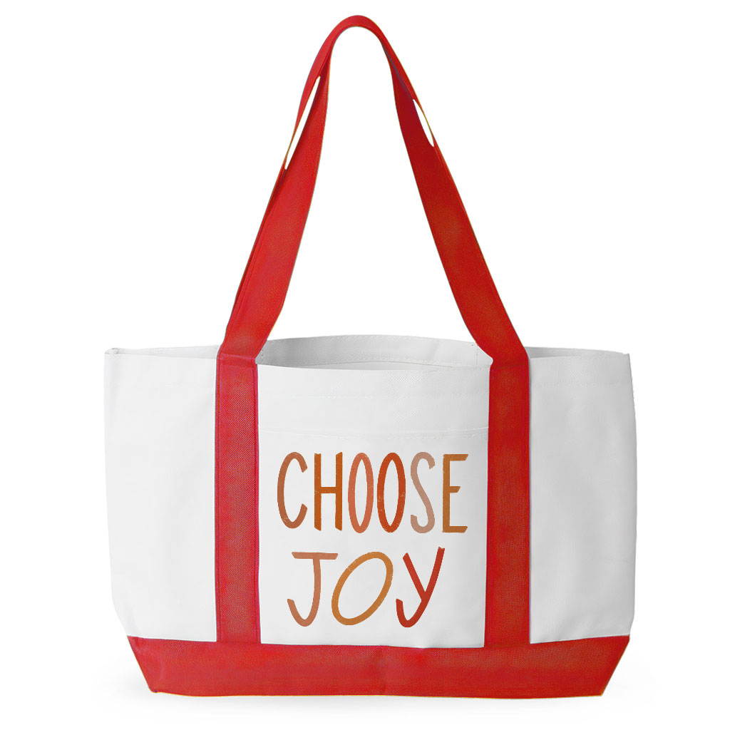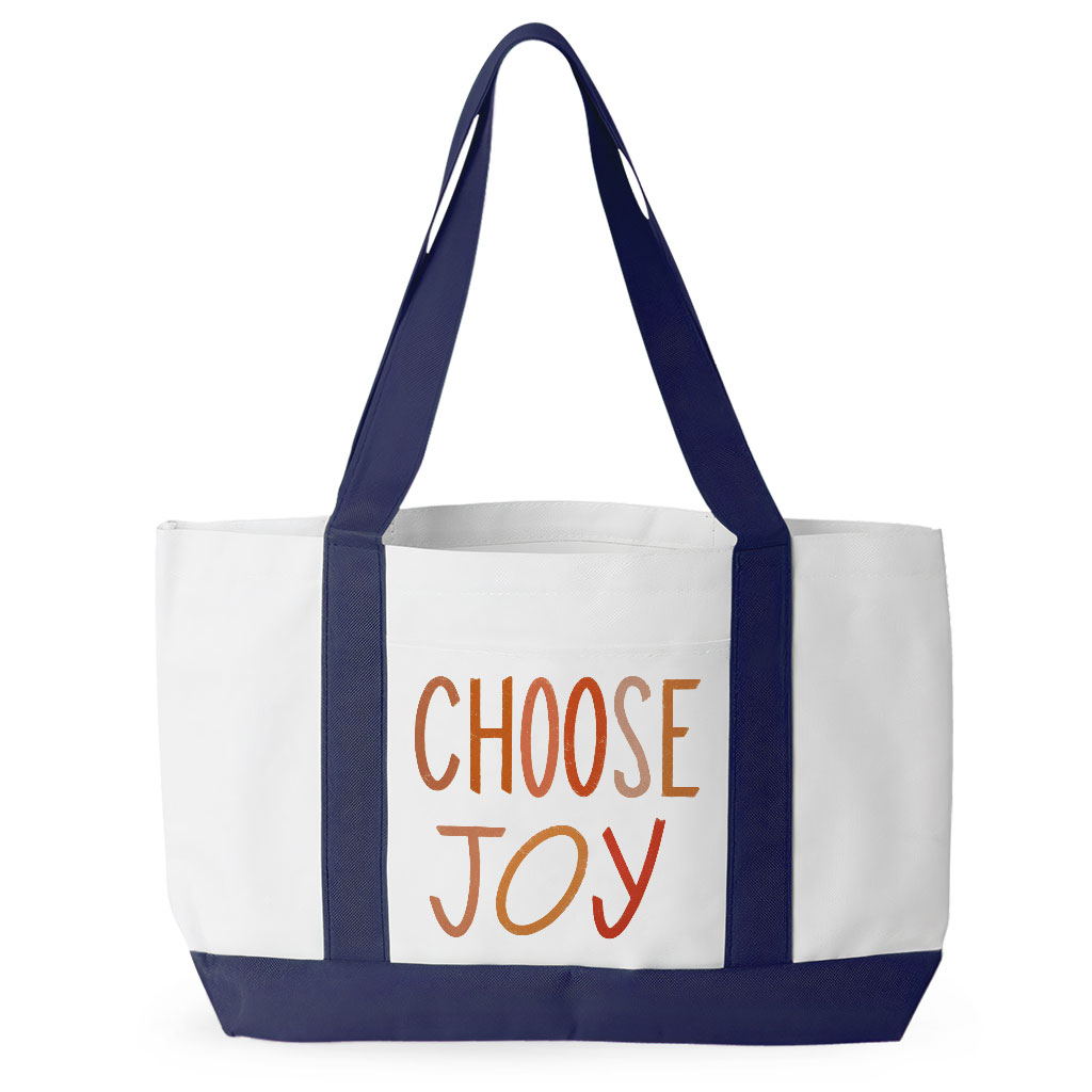 Choose Joy Cruiser Tote Bag has heavy-weight stitching throughout, including cross-stitching at the handles for maximum strength, which allows the bag to hold up extra capacity.