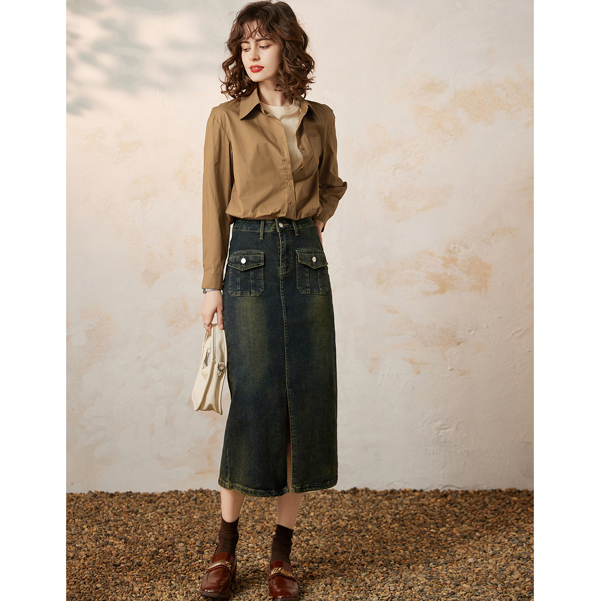 What sets this blouse apart is its innovative design that creates the illusion of wearing two pieces. This not only adds a stylish touch but also simplifies your outfit selection process. The blend of cotton and polyester ensures the blouse remains soft and breathable, while also being easy to care for. The turn-down collar and long sleeves add a touch of elegance, making it suitable for both professional and semi-formal occasions.