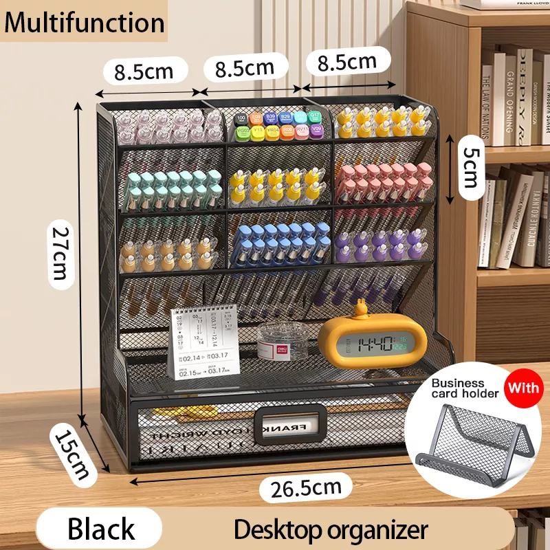 - Nine-Compartment Design: Featuring nine individual compartments, this organizer offers ample space to store a variety of items, from pens and markers to makeup brushes and small accessories.