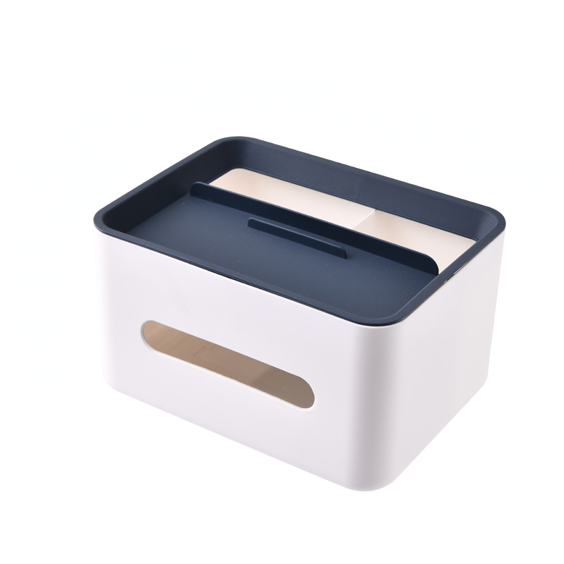 Transform your home or office with the Multifunctional Tissue Box and Desk Organizer. This all-in-one solution combines a tissue holder with ample storage for remotes, stationery, and other sundries, ensuring your space stays neat and organized. Crafted from durable PP material, it boasts a modern and simple design that fits seamlessly into any decor. Available in chic blue and gray, this organizer not only offers practicality but also adds a touch of style to your living room, desktop, or bathroom.